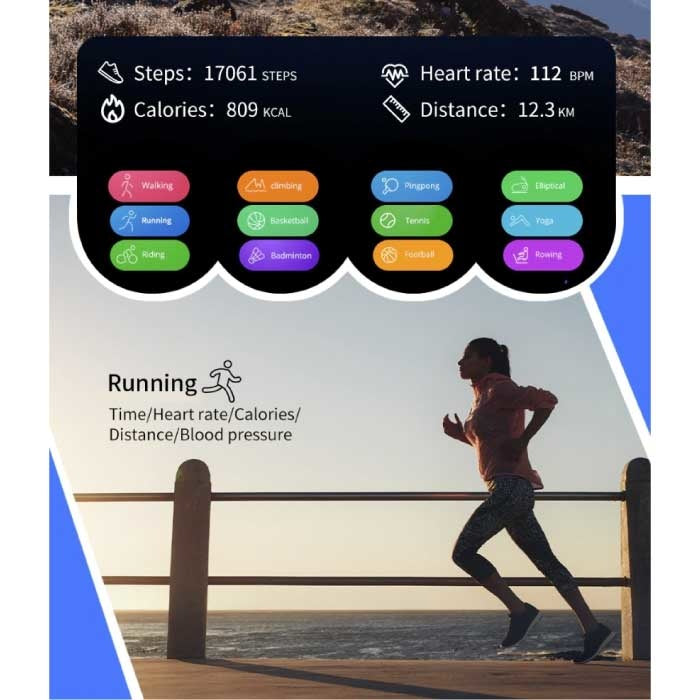 ساعة أتاك الذكية - مراقب النوم، مراقب معدل ضربات القلب، تتبع اللياقة البدنية والرياضة، ساعة نشاط، ساعة ذكية للهواتف الذكية، iOS، أندرويد، مقاومة للماء بمعيار IPX6، أزرق