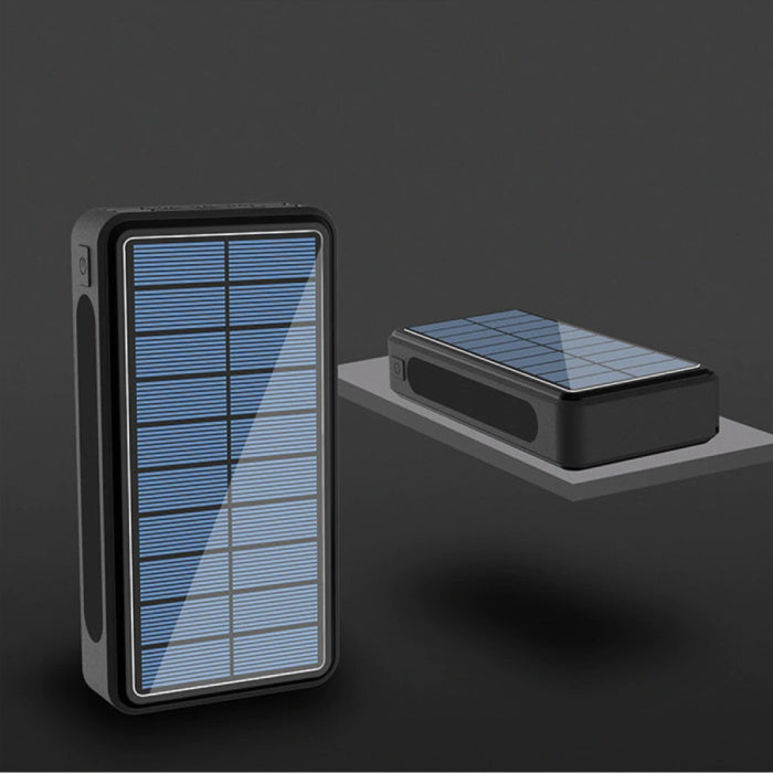 باور بانك شمسية لاسلكية Qi بسعة 80,000 مللي أمبير في الساعة مع 4 منافذ - مصباح يدوي مدمج - شاحن بطارية طوارئ خارجي بالطاقة الشمسية باللون الأسود
