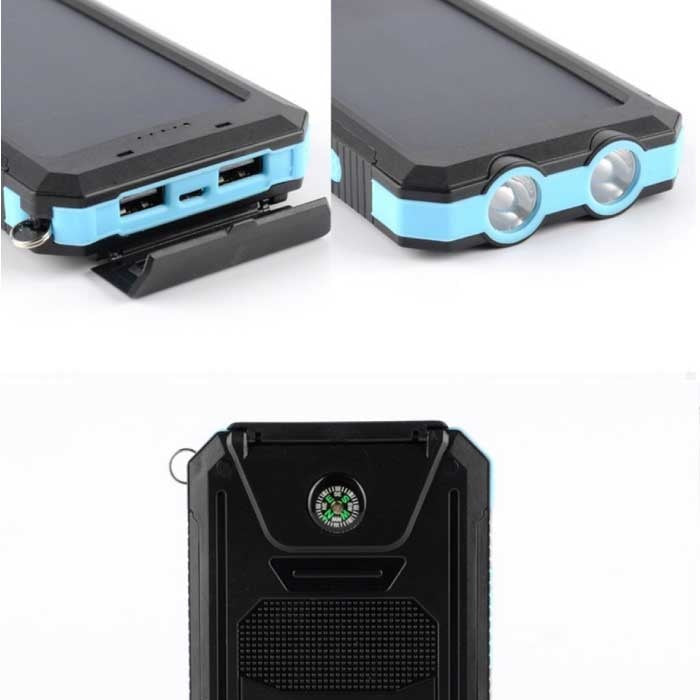 شاحن شمسي 20.000mAh مع مصباح يدوي - باور بانك خارجي لوحة شمسية بطارية طوارئ شاحن طاقة شمسية أزرق