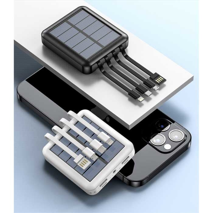 بطارية شمسية محمولة صغيرة بسعة 20,000 مللي أمبير في الساعة - 4 أنواع من كابلات الشحن - مصباح يدوي مدمج - شاحن بطارية طوارئ خارجي أسود