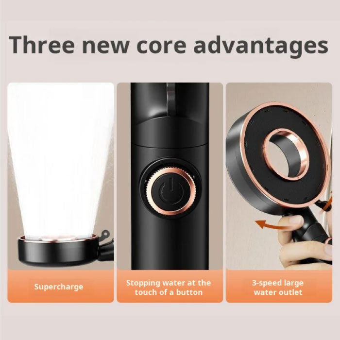 Booster-Duschkopf – Hochdruck-Duschkopf mit 3 Strahlarten für Badewanne und Dusche – Weiß