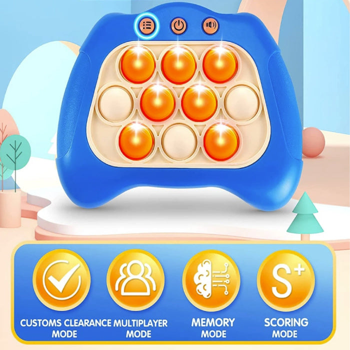 Entdecken Sie den neuesten Trend mit dem Pop-It Controller! Diese tragbare Spielkonsole ähnelt dem beliebten Spiel Whack-A-Mole, verfügt aber über ein einzigartiges Pop-It-Design und 10 leuchtende Blasen in verschiedenen Formen.