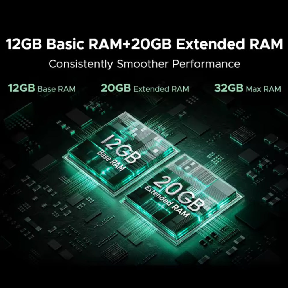 Mit einer beeindruckenden 32 GB RAM, bestehend aus 12 GB interner Speicher en 20 GB erweiterter Arbeitsspeicher, Und 256 GB interner Speicher Sie haben ausreichend Platz und Geschwindigkeit. Außerdem können Sie die Speicherkapazität auf bis zu erweitern. 2TB mit einem Extra TF-Karte – ideal für all Ihre Fotos, Videos und Apps.