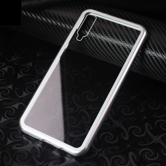 Samsung Galaxy Note 10 Plus Magnetische 360 ° Hülle mit gehärtetem Glas - Ganzkörperhülle + Displayschutzfolie Silber
