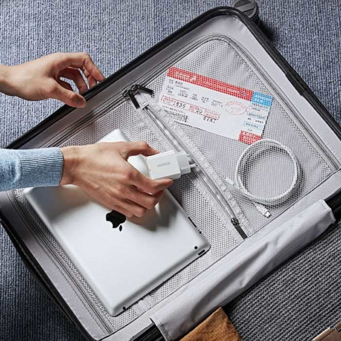 The charger is compatible with all different types of charging technologies, including support for Power Delivery, QC3.0, QC2.0, Apple 2.4A, Samsung AFC, and Huawei FCP. The charger is also universal in terms of power supply for any standard, from 100V to 240V. This means you can use the charger anywhere in the world.
