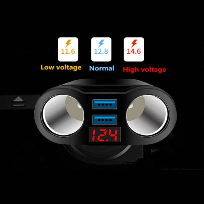 2-Way Cigarette Lighter Splitter Plug with 2 USB Ports 45W / 3.1A - Power Distribution Plug Car Charger Splitter Dual Port Carcharger - White