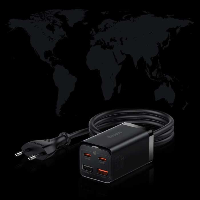 The Baseus 4 in 1 charger is a premium fast charger that works on the latest GaN technology with which you can can charge four devices simultaneously Charging at ultra-high speeds. GaN stands for Gallium Nitride, a crystalline material that can handle much higher voltages than previously possible with chargers.