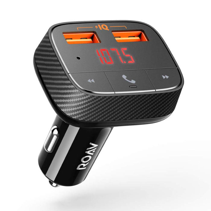 With the built-in wireless FM transmitter you can easily stream all your favorite music from your smartphone to your car radio via Bluetooth. Do you receive a call on the way? Then the music will automatically stop playing. With a simple push of a button you answer the phone call and make hands-free calls thanks to the built-in HD microphone!