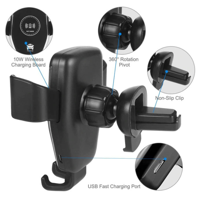 Qi Wireless Car Charger Charger Universal 9V - 1.67A Wireless Car Charging Pad Black