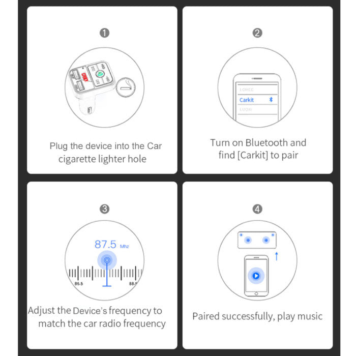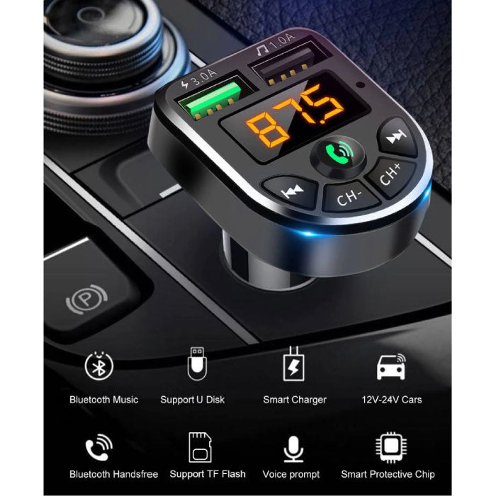Dual USB Car Charger with Bluetooth Transmitter - Handsfree Charger FM Radio Kit With SD Card Slot Black