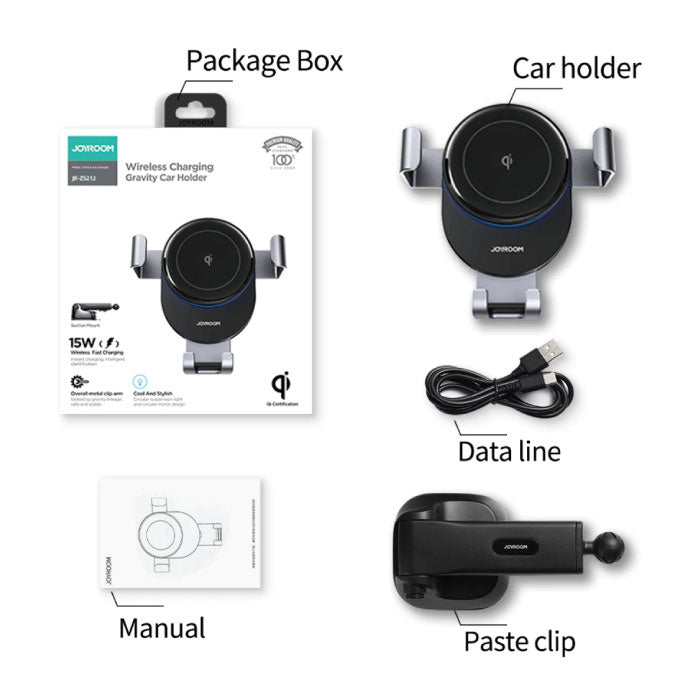 Qi Wireless Car Charger 15W - Quick Charge 3.0 - Dashboard Stand Charger Universal Wireless Car Charging Pad Black