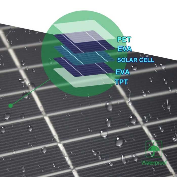 By means of 28W Fast Charging And with enough sun, you can charge any device ultra-fast. The solar panels are protected by a sophisticated waterproof material suitable for all kinds of conditions.