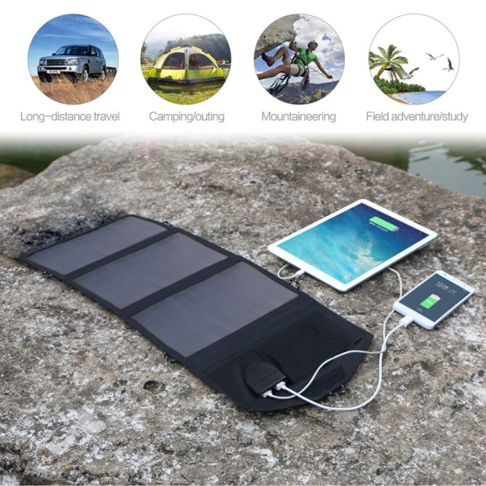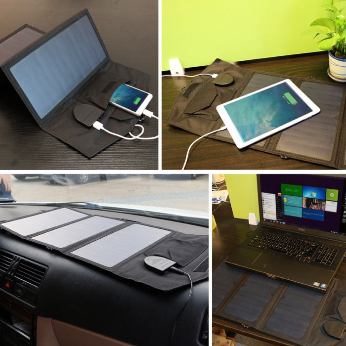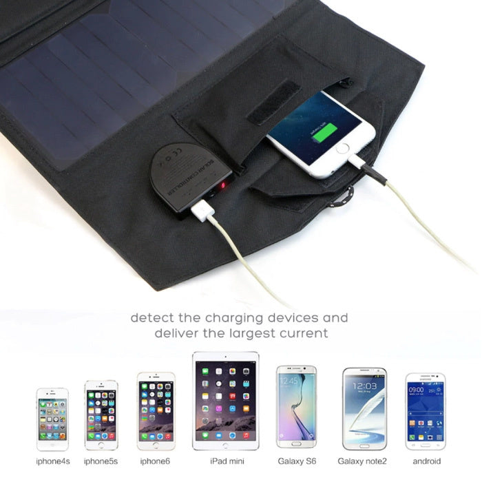 The solar panels are protected by a sophisticated waterproof material for all conditions, including water resistance. Four practical hooks on the charger allow you to align your device to maximize sunlight.