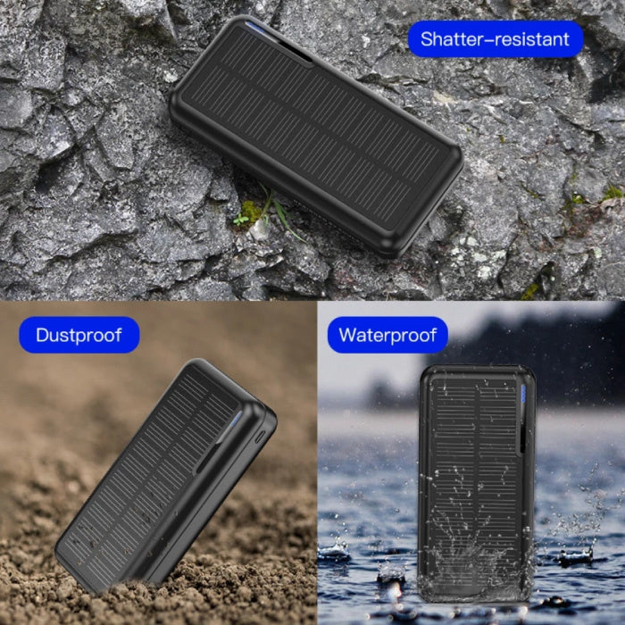 Banco de energía solar inalámbrico con 4 puertos 20.000mAh - Indicador LED Batería de emergencia externa Cargador de batería Cargador Sun Black