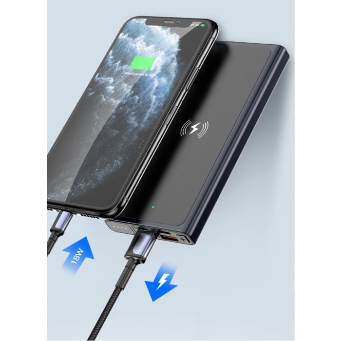 Gracias a la batería integrada de 10 000 mAh, siempre tendrás varias cargas para tu smartphone en el bolsillo. No necesitas conectar ningún cable; simplemente coloca tu teléfono en la batería externa inalámbrica y ¡se cargará al instante!