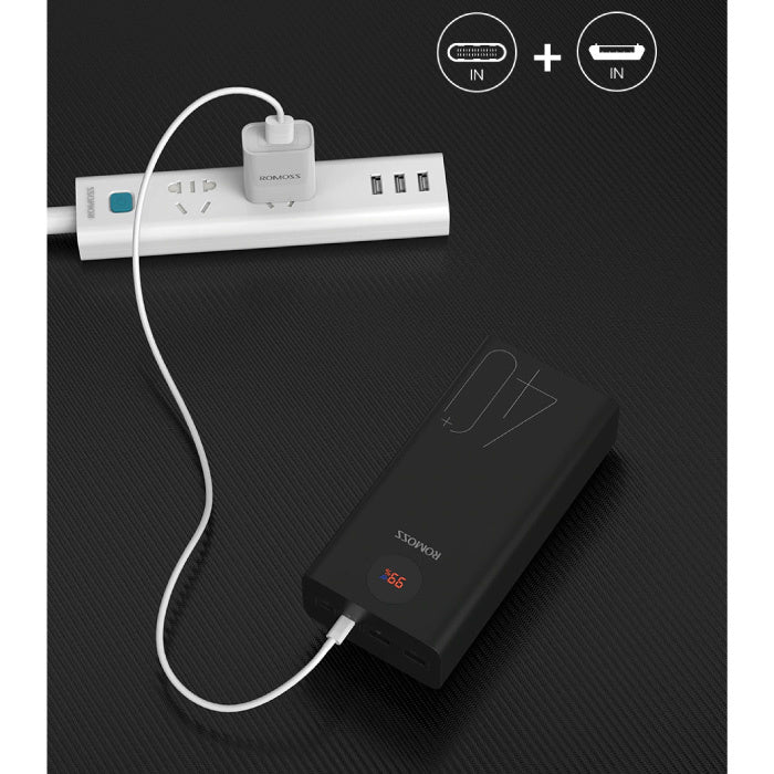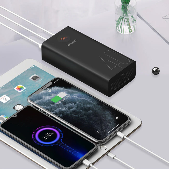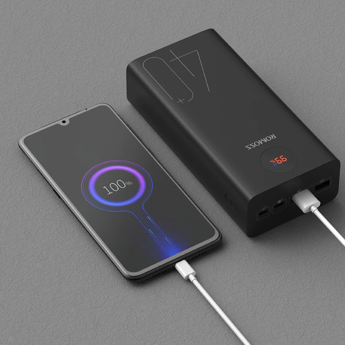 Zeus 40.000mAh Power Bank con 4 puertos - Pantalla LED Cargador de batería de emergencia externo Cargador de batería Negro