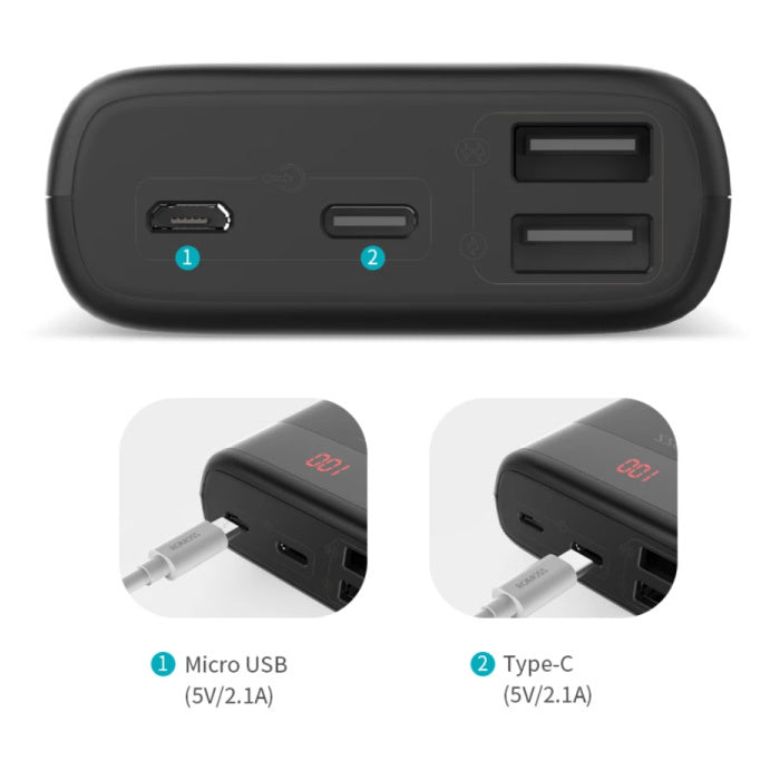 Banco de energía Ares 10,000mAh con 4 puertos - Pantalla LED Cargador de batería de emergencia externo Cargador de batería Negro