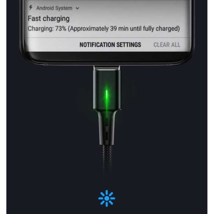 Câble de charge magnétique Lightning pour iPhone 2 mètres avec lumière LED - Câble de données pour chargeur en nylon tressé à charge rapide 3A Android Noir