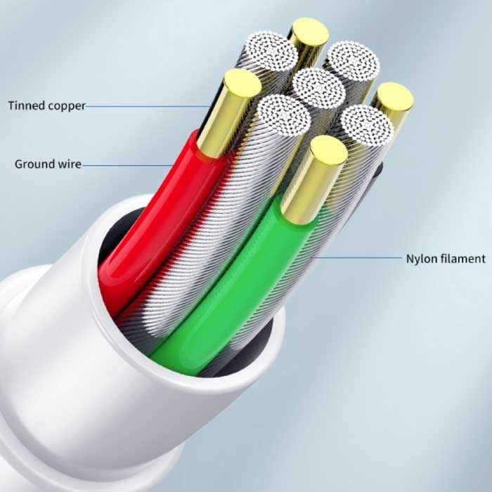 Câble de charge USB-C 2 mètres - Chargeur rapide 6 A/66 W, câble de données blanc