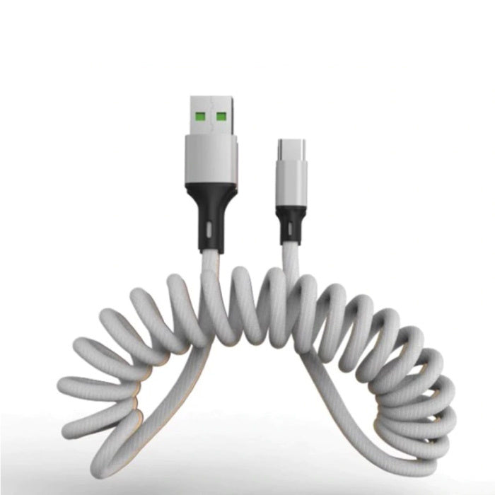 Câble de charge USB-C courbé - Câble de données à ressort en spirale 5A Câble de chargeur de 1,5 mètre argent