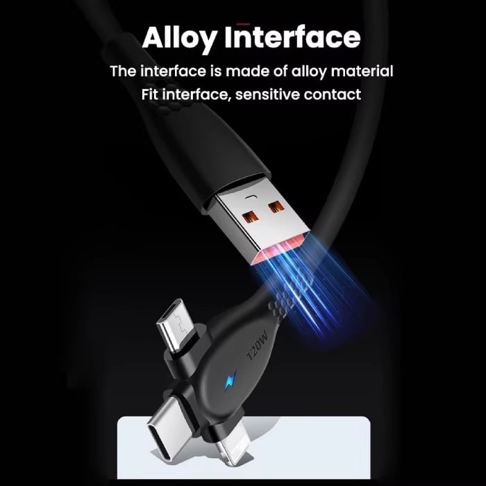 Rencontrez le Câble de charge 3 en 1 EloughUn câble polyvalent et performant qui alimente sans effort tous vos appareils. iPhone, appareil USB-C ou micro-USB : ce câble est compatible avec tous.