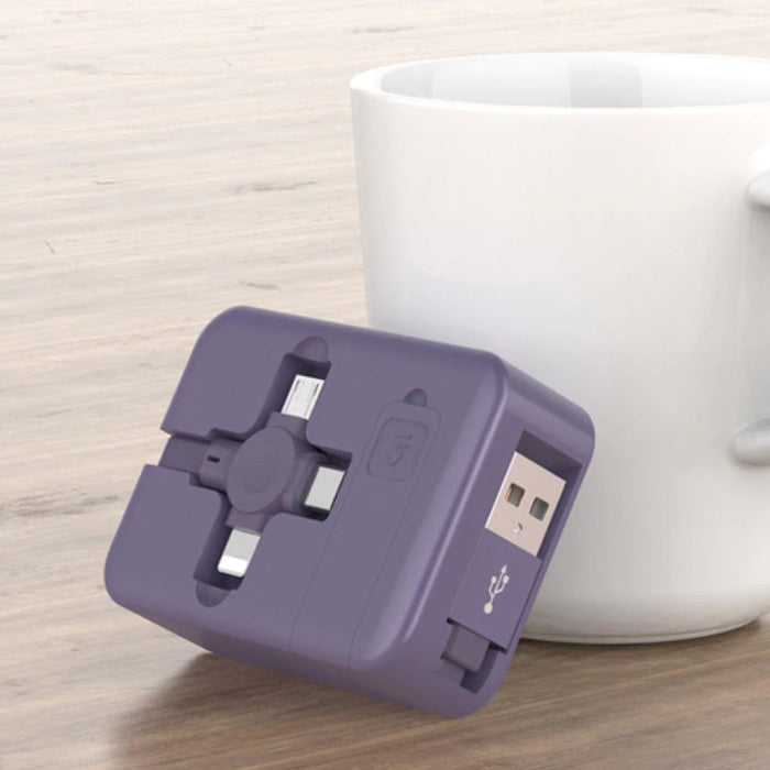 Kabel ładujący 3 w 1 zwijany – iPhone Lightning / USB-C / Micro-USB – 1 metr, kabel do ładowania i transmisji danych, fioletowy