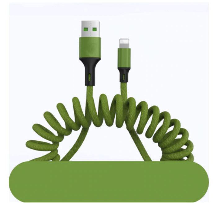 Kabel ładujący USB-C z zagiętym trzpieniem – 5A, spiralny kabel danych, 1,5 metra, zielony