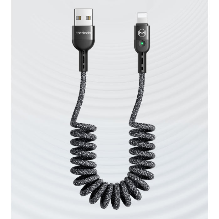 Zwinięty kabel do ładowania USB Lightning do iPhone'a - spiralny nylonowy kabel do transmisji danych Kabel do ładowania 1,8 m Szary