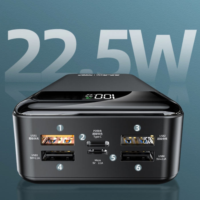 Diverse Invoermogelijkheden: Deze geavanceerde powerbank is ontworpen met gebruiksgemak in gedachten. Met twee verschillende input poorten - USB-C en micro-USB - kun je de powerbank op verschillende manieren opladen, afhankelijk van je beschikbare kabels en apparaten.