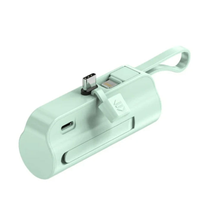 10.000mAh Mini Powerbank voor USB-C - Extra iPhone Lightning Kabel Noodaccu Batterij Oplader - Groen