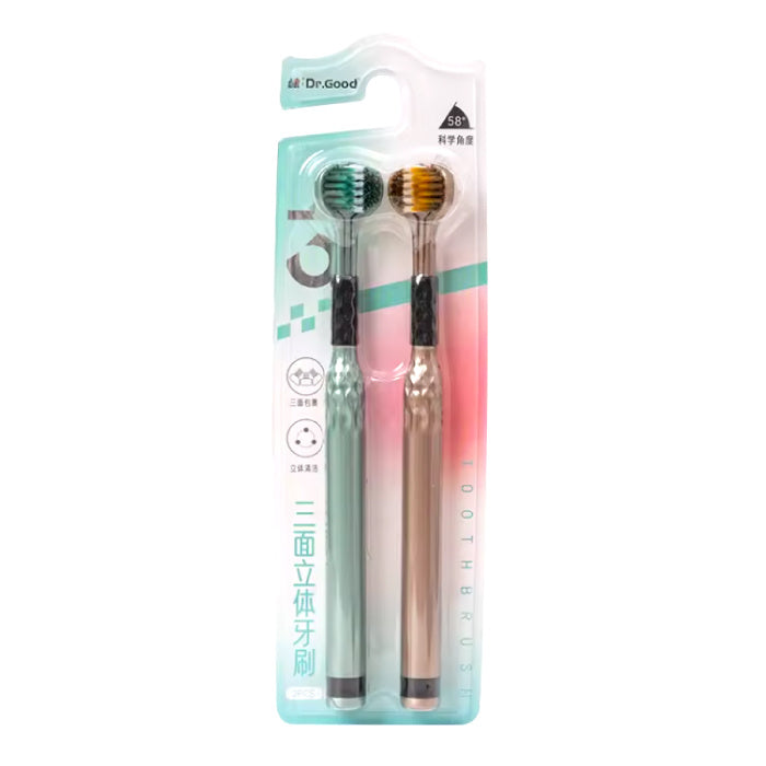 2-Pack Tandenborstel Set 3-Zijdig - Ideaal Hoekontwerp - Verhoogde Tongcoatingborstel - Groen Goud