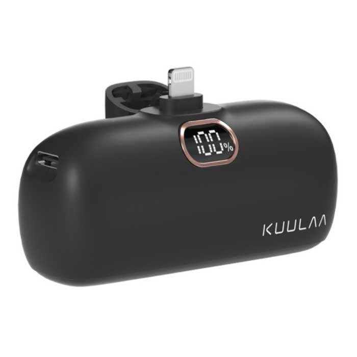 5000mAh Mini Powerbank voor iPhone Lightning - QC / PD Externe Noodaccu Batterij Oplader Zwart