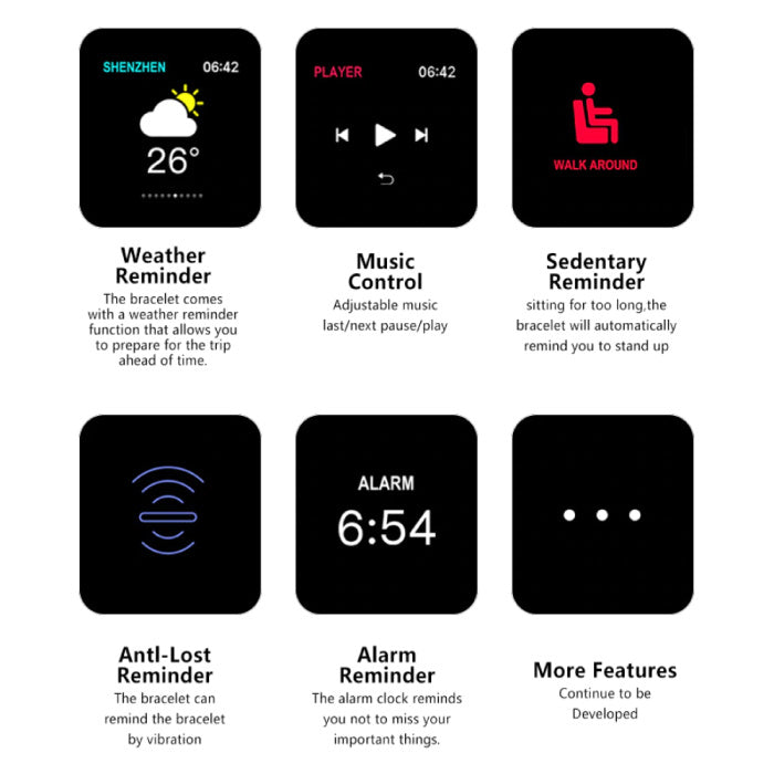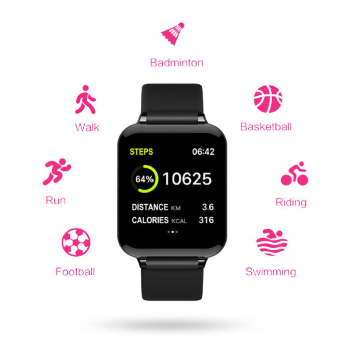 B57 Sports Smartwatch Fitness Sport Activity Tracker Hartslagmeter Smartphone Horloge iOS Android iPhone Samsung Huawei Zwart