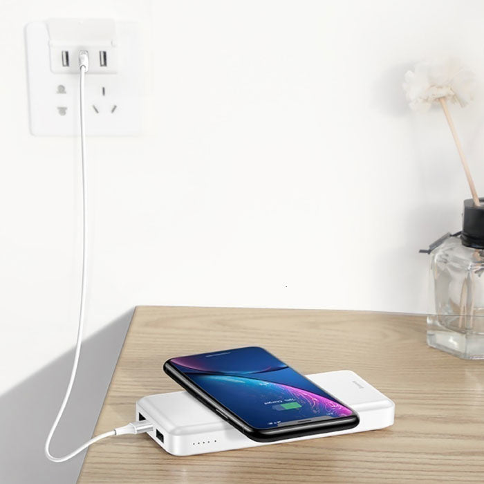 1x 10.000mAh Powerbank + Draadloze oplader 1x USB naar Micro-USB kabel |