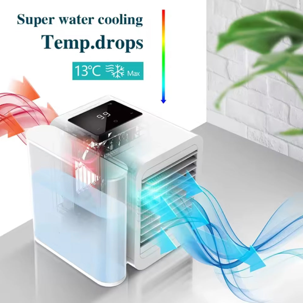 Geniet van verkoeling, frisse lucht en een comfortabele luchtvochtigheid met deze stijlvolle en compacte 3-in-1 mini luchtkoeler. De multifunctionele werking koelt, zuivert en bevochtigt de lucht, waardoor je het hele jaar door een aangenaam binnenklimaat ervaart.