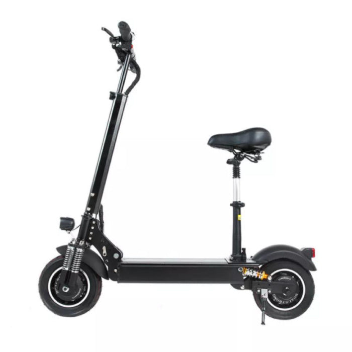 De scooter wordt aangedreven door een 23.4 Ah Li-Ion oplaadbare batterij. Het duurt ongeveer 5 tot 9 uur om de batterij volledig op te laden, en u kan de status ervan volgen op het LED-bedieningspaneel. Dankzij de krachtige 2000W motor haalt de step snelheden van 70 km/u, en u gaat tot 80 km ver in één oplaadbeurt. 's Nachts rondrijden in het donker kan ook gewoon perfect met de sterke LED koplamp.