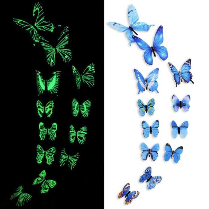 Glow in the Dark Vlinders - 12 Stuks - Lichtgevende Muurstickers Decoratie Blauw