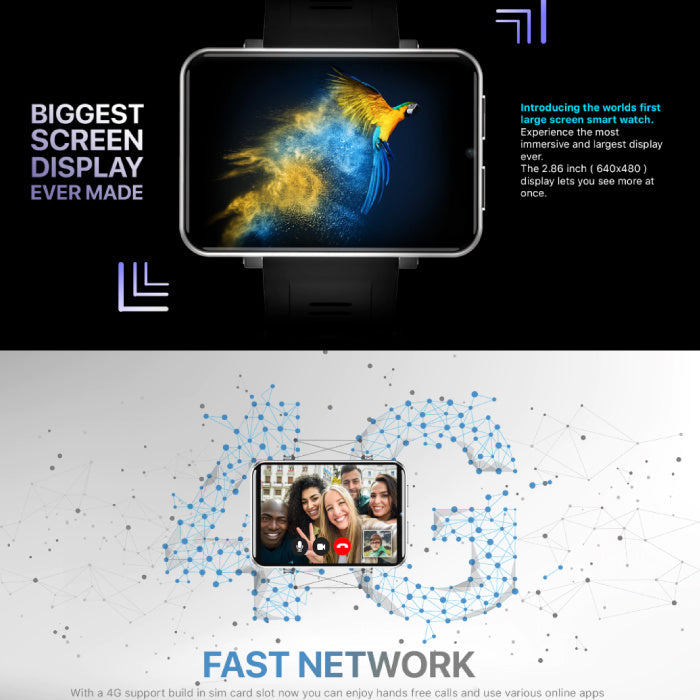 De toekomst is eindelijk hier! De Lemfo LEM T is één van de eerste Large Display smartwatches met een verbazingwekkend 2.86 inch scherm (640x480 pixels). Door het grote scherm kan u makkelijk het internet browsen op uw smartwatch.