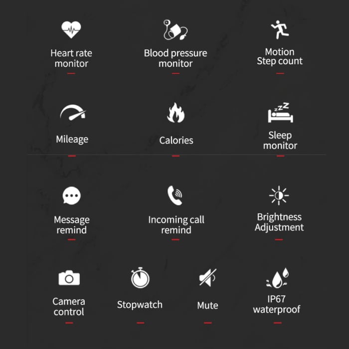 Sports Smartwatch Fitness Sport Activity Tracker Smartphone Horloge iOS Android iPhone Samsung Huawei Zwart