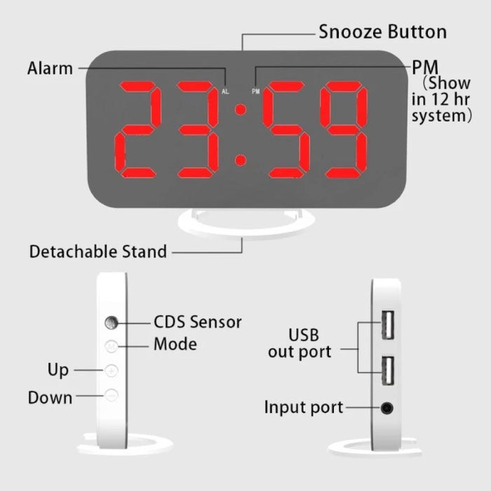 Multifunctionele Digitale LED Klok - Wekker Spiegel Alarm Snooze Helderheid Aanpassing Groen