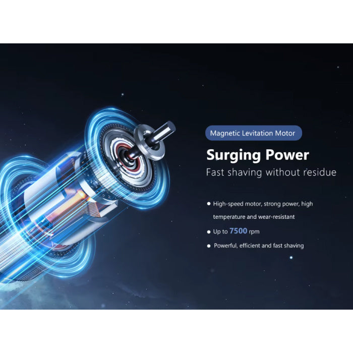 Uitgerust met een magnetische levitatormotor biedt dit scheerapparaat tot 7500 omwentelingen per minuut voor een krachtige, snelle en grondige scheerbeurt. De ingebouwde batterij zorgt na slechts 1,5 uur opladen voor een gebruiksduur van 100 minuten, ideaal voor dagelijks gebruik of op reis.