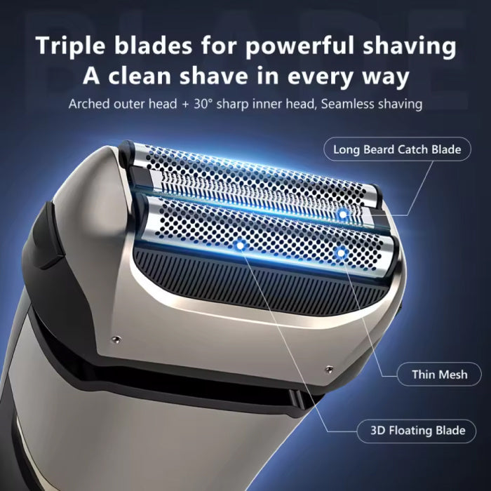 Dankzij de IPX7-waterdichte technologie kun je zowel nat als droog scheren. Spoel het apparaat eenvoudig af onder de kraan voor snelle en hygiënische reiniging. De gemakkelijk afneembare scheerkop maakt onderhoud nog eenvoudiger.