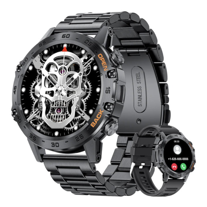 Smartwatch - Gezondheid Monitor Sport Tracker Horloge iOS Android - Staal Bandje - Zwart