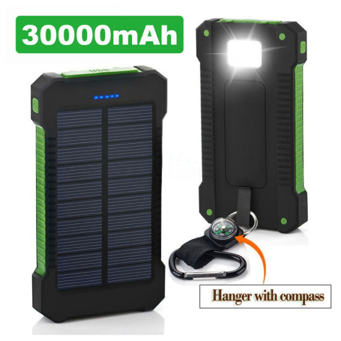 Solar Charger 30.000mAh Externe Powerbank Zonnepaneel Noodaccu Batterij Oplader Zon Groen