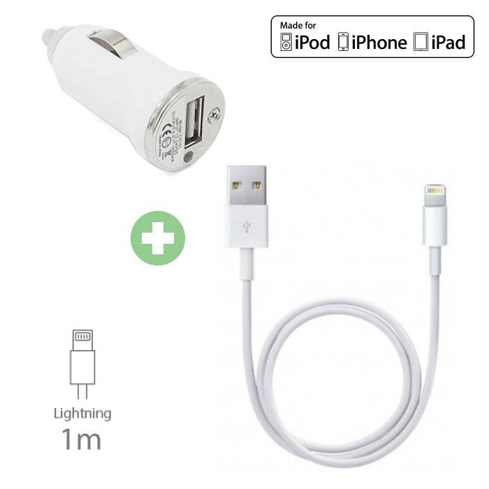 2 in 1 Oplaadset Oplaadkabel USB/Datakabel & Autolader/Carcharger voor iPhone 1 Meter