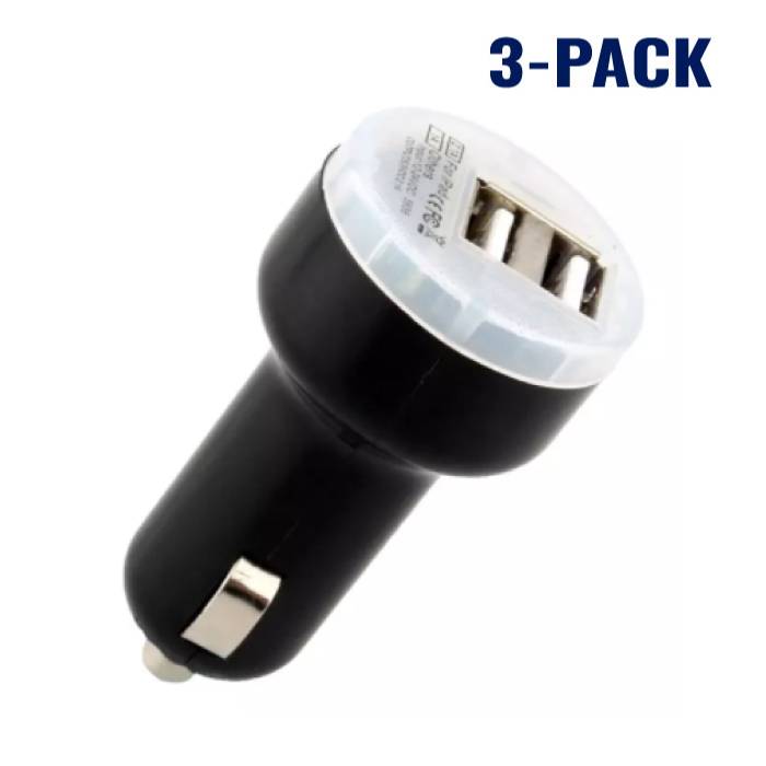 3-Pack High Speed Dubbele Autolader/Dual Carcharger Zwart