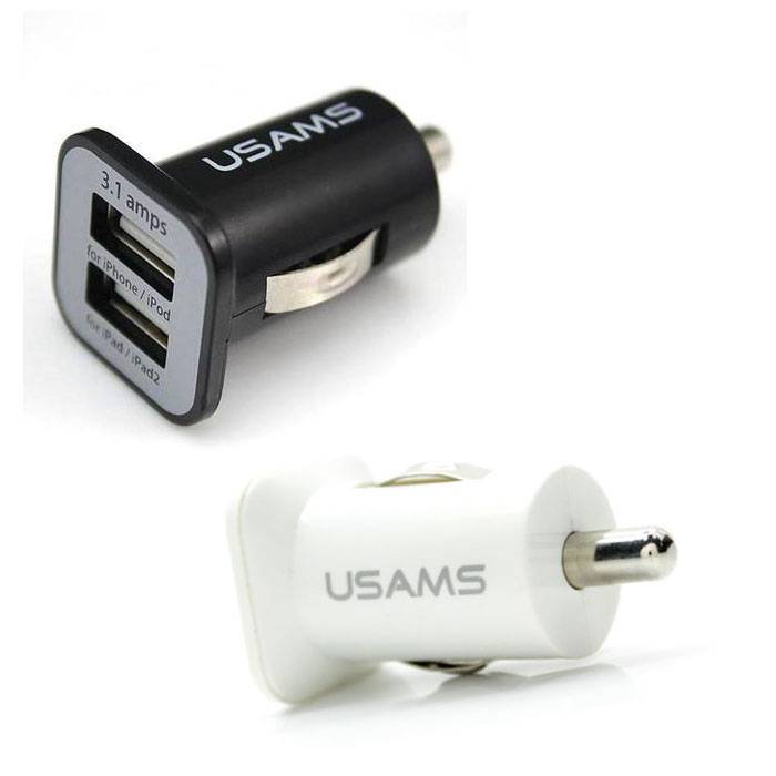 USAMS Dual Autolader/Carcharger Zwart/Wit