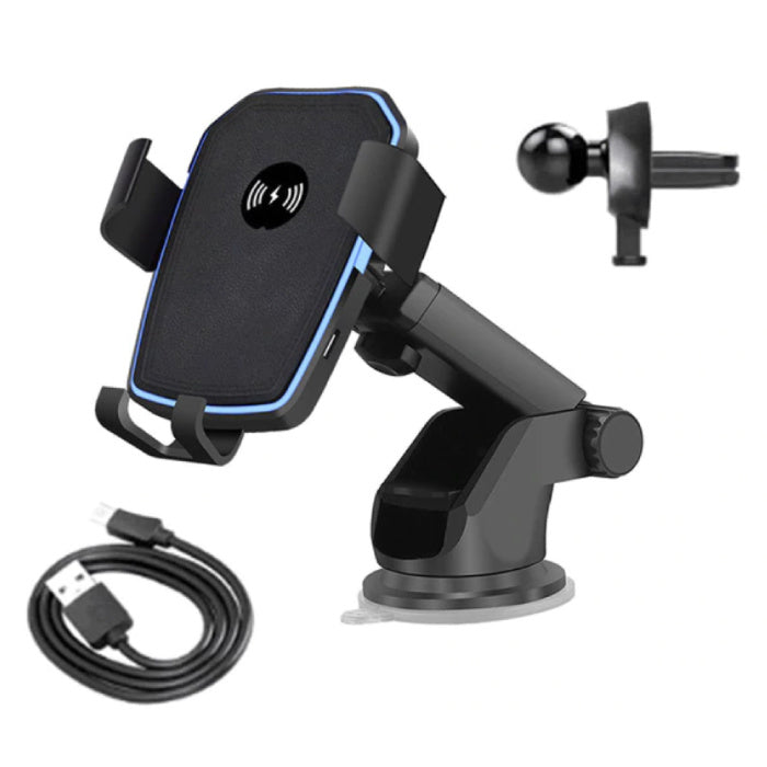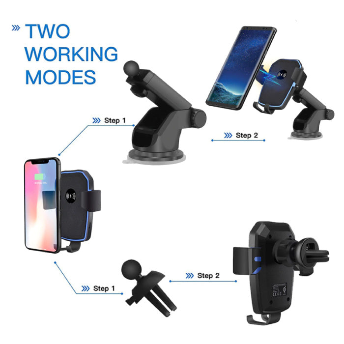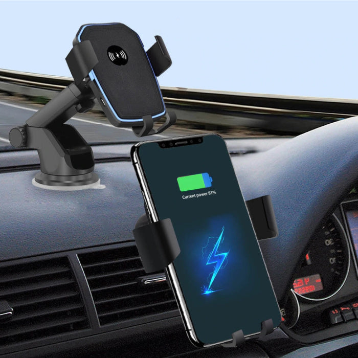 10W Qi Trådlös Bil-laddare med Armhållare Laddare Universell 9V - 1A Trådlös Bil-laddningsplatta Svart