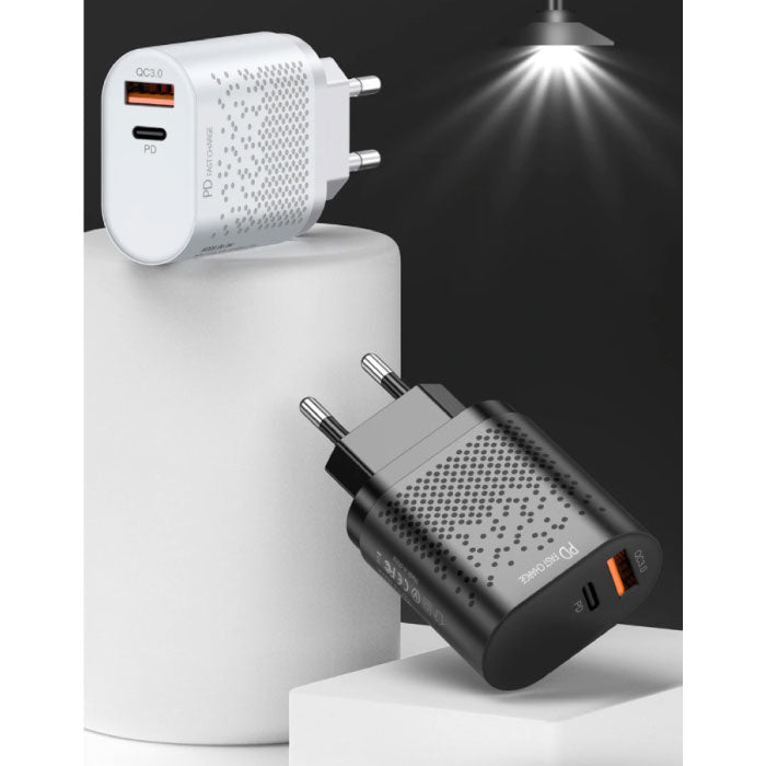 2-Port USB-laddare - 36W PD Snabbladdning / Quick Charge 3.0 - Väggladdare AC Hemladdare Adapter Svart