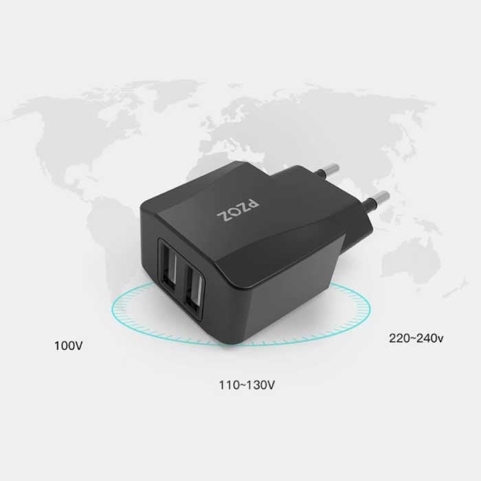 2,1A Väggladdare - Dubbel 2-Port USB Snabbladdare Väggladdare AC Hemladdare Adapter Svart